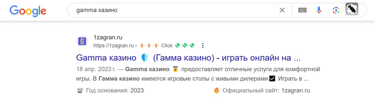 Proof that Google likes it - top-4 for the query “gamma casino” in Google’s Russian results (screenshot snippet in the attached image).
