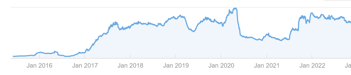 Было любопытно наблюдать, как в периоды роста жирных сайтов в выдаче - askgamblers все еще бьется о стеклянный потолок на фоне других конкурентов. casino.guru, например: