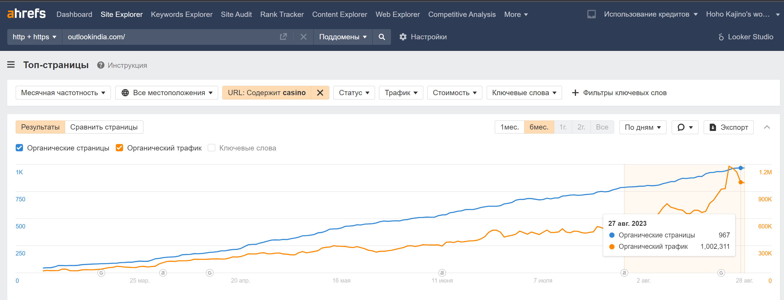 P.S: Я уже разбирал феномен сайта OutlookIndia ранее, но тогда я намеренно не сказал детали выше в рассчете на то, что гугл все же порежет такой охуевший прирост именно аффилиейт трафа. Ан нет.